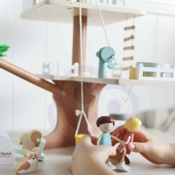 La casetta sull’albero Classic World invita i bambini in un mondo di fantasia e racconti. La struttura a due livelli con staccionate, scala e una piccola casetta offre tanti scenari – dal sollevare tesori con la carrucola mobile con secchio al dondolarsi sulle altalene e giocare con gli animaletti. Il set è ideale per sviluppare motricità fine, creatività e abilità sociali durante il gioco condiviso.