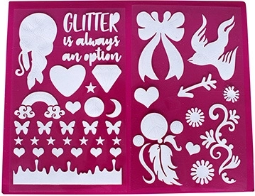 Scopri la magia dello Studio luccicante Glitterific, che ti permette di creare splendidi tatuaggi e decorazioni brillanti. Grazie alla speciale penna e agli stencil, puoi creare forme diverse e applicare i glitter con la massima precisione.