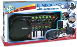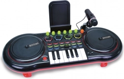 Mixer – 2 piastre DJ con effetti luminosi, 5 effetti vocali, 6 frasi musicali, 7 effetti sonori, 4 arrangiamenti, area di gioco, 13 tasti con 3 suoni differenti, 4 suoni di batteria, volume regolabile, possibilità di collegamento a MP3 (Smartphone, iPod, lettore CD), cavo non incluso, collegamento del microfono incluso nella confezione, presa per cuffie non inclusa, supporto per MP3 incluso.
