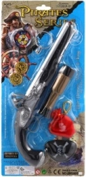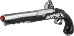 Pistola giocattolo decorativa con incisioni e punta rossa ben visibile per un gioco sicuro, che aggiunge stile a ogni missione pirata.