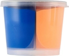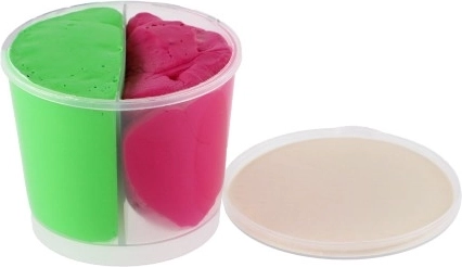 La pratica suddivisione del barattolo consente di avere subito due colori vivaci pronti per modellare e mescolare, senza disordine e con tutto sotto controllo.