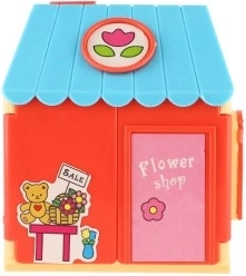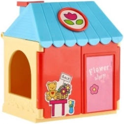 Una casetta allegra con motivi floreali e cassetta per il denaro che insegna ai bambini a combinare i colori, creare composizioni e prendersi cura dei clienti.