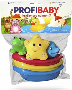 Un divertente set di tre barchette di plastica con animaletti trasforma ogni bagnetto in un gioco gioioso. Il giocattolo è prodotto in Repubblica Ceca, non contiene ftalati e soddisfa i test cechi. I diversi colori e forme stimolano la fantasia dei bambini e la motricità fine.