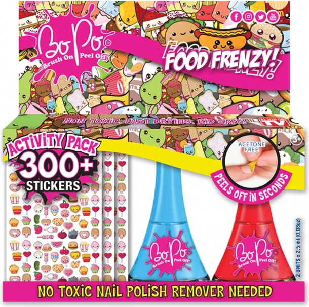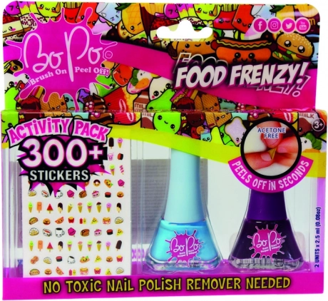 Gli smalti Bo-Po sono progettati appositamente per bambini dai 3 anni in su, sono atossici, asciugano rapidamente e si rimuovono facilmente con il peel-off.