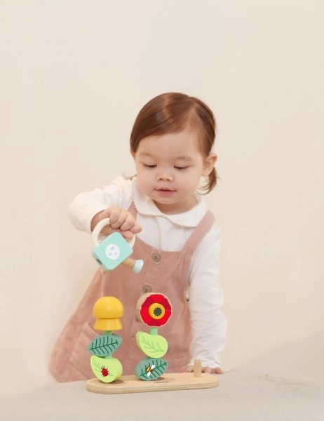 I pezzi di legno impilabili possono creare belle strutture floreali, che favoriscono lo sviluppo della creatività infantile.