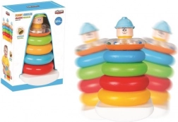 Un puzzle allegro e colorato che aiuta a sviluppare le abilità motorie dei bambini. La piramide impilabile include cinque anelli colorati e un pupazzetto sorridente in cima.