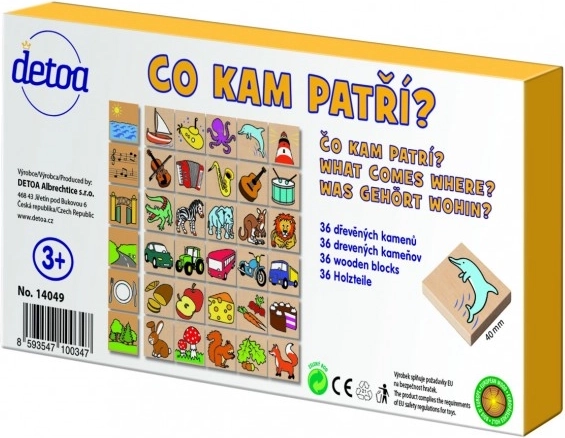 Detoa puzzle in legno Cosa va dove è un gioco didattico che aiuta i bambini a riconoscere gli oggetti e ad associarli all'immagine corretta. Questo gioco è ideale per migliorare il pensiero logico e la memoria nei bambini a partire dai 3 anni.