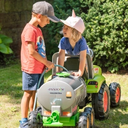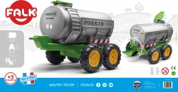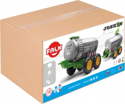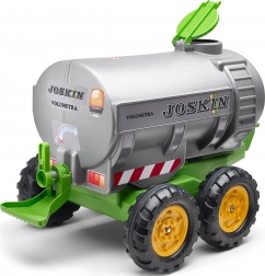 Rimorchio “Cisterna” Joskin a quattro ruote, di colore verde, nel quale è possibile riempire davvero l’acqua. Compatibile con i trattori Falk. Realizzato in plastica di alta qualità in Francia.