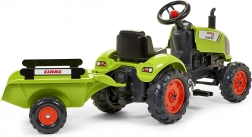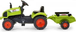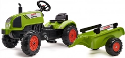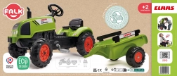 Trattore a pedali Claas Arion 410 con rimorchio, cofano apribile, marmitta, volante e clacson. Realizzato in plastica di alta qualità e grande resistenza. Dimensioni 138×53×42 cm. Età 2+. Tutti i trattori Falk sono testati per 30 kg secondo i requisiti delle norme europee. Prodotto in Francia.