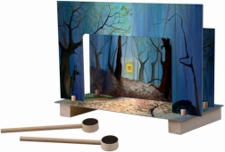 Le figurine si muovono sul palco «da sole» grazie alle bacchette magnetiche inserite sotto la scena – divertente, facile e senza fili.
