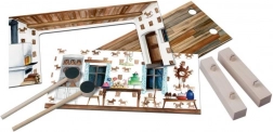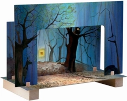 Il teatro include cinque personaggi (Hansel, Gretel, la strega, il papà e il gatto), che si muovono sul palco tramite bacchette magnetiche inserite sotto la scena. Le scenografie si possono cambiare liberamente, creando nuovi ambienti per le storie – dal bosco oscuro alla casetta accogliente.