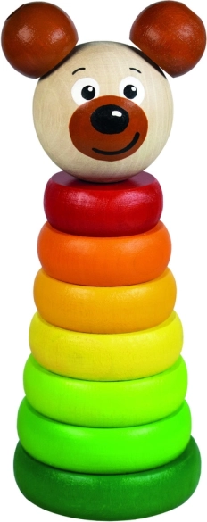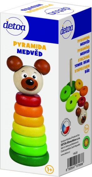 La tradizionale piramide impilabile in legno con la testa di un tenero orsetto colpisce per i colori vivaci e aiuta i bambini da 1 anno a sviluppare la motricità fine, la logica e il riconoscimento di forme e colori. Grazie alla struttura robusta, ai bordi arrotondati e ai 8 pezzi è sicura, resistente e prodotta nella Repubblica Ceca.
