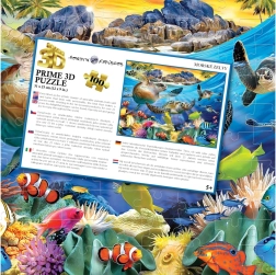 Scopri la magia del montaggio tridimensionale con il puzzle 3D spiaggia delle tartarughe. Lo speciale effetto ottico dona profondità all’immagine, facendo apparire alcune figure o oggetti più lontani rispetto a quelli in primo piano. Durante il montaggio i bambini allenano la motricità fine, la pazienza e l’attenzione ai dettagli, provando al contempo la gioia dell’immagine completata.