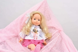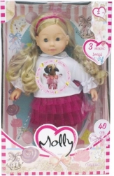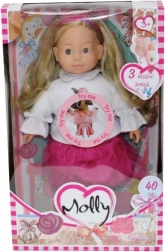 La dolce bambola Molly di Bambolina farà felice ogni bambino dai 3 anni. Ha una testa, mani e piedi in vinile realistici, occhi che si chiudono e lunghi capelli pettinabili. Sa riprodurre 3 allegre canzoncine che rendono il gioco più piacevole e stimolano la creatività. Per il funzionamento sono necessarie 3× batterie LR44 (non incluse).