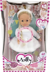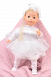 La dolce bambola Bambolina Molly ballerina farà felice ogni piccola amante della danza. Ha occhi ammiccanti, lunghi capelli e indossa un bellissimo vestitino da ballerina. Sa riprodurre 3 canzoncine e, grazie all’altezza di 40 cm, è facile da tenere anche per i bambini più piccoli. Adatta dai 3 anni, le batterie LR44 sono incluse nella confezione.