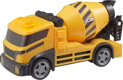 Questa betoniera sembra una macchina reale grazie ai dettagli come il tamburo rotante, le ruote e il logo JCB.
