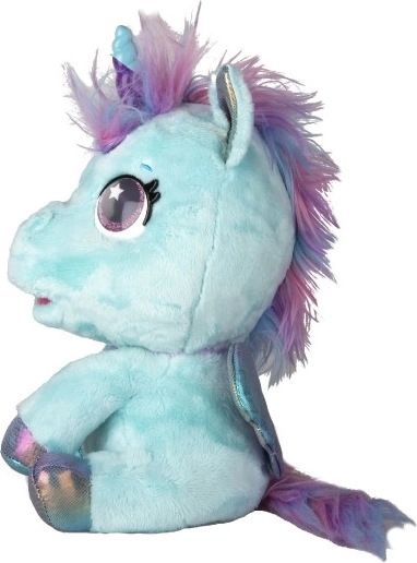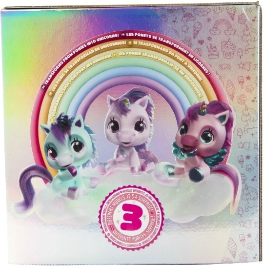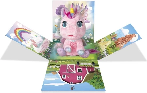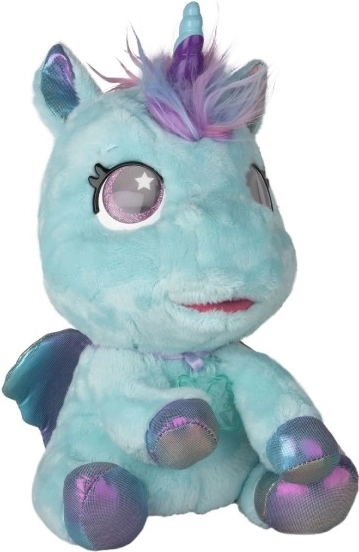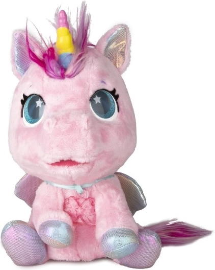 Pony di peluche interattivo che diventerà il tuo compagno preferito. Reagisce a carezze e attenzioni con oltre 30 suoni e azioni, dal nitrito felice al dolce canticchiare. Grazie alla trasformazione progressiva in tre fasi magiche potrai vedere come cresce il corno colorato e come il pony si trasforma in un bellissimo unicorno.