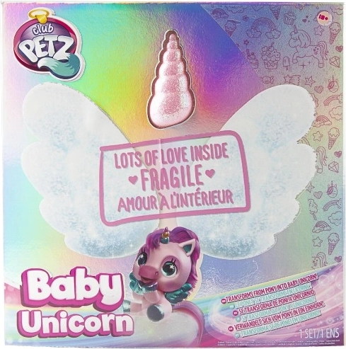 Scopri la magia con un amico di peluche che, grazie alle tue cure, si trasforma in un unicorno! Questo tenero cucciolo offre oltre 30 suoni e interazioni, la crescita magica del corno colorato in 3 fasi e arriva con 9 accessori per un gioco creativo. Accarezza, pettina, nutri e completa la trasformazione applicando le ali arcobaleno e il ciondolo.