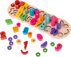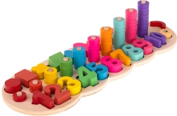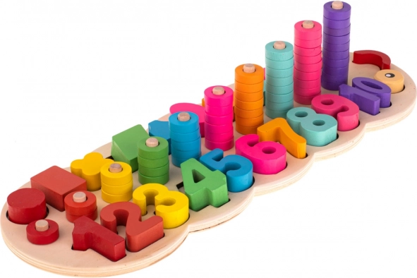 Il giocattolo educativo in legno Millepiedi offre un'ottima opportunità per lo sviluppo di diverse abilità infantili. Contiene una base a forma di millepiedi insieme a dieci blocchi sagomati di colori diversi, numeri da 1 a 10 e 55 anelli colorati. I bambini possono abbinare le forme nei fori corrispondenti, migliorando le loro abilità motorie e coordinazione.