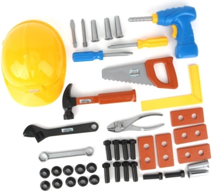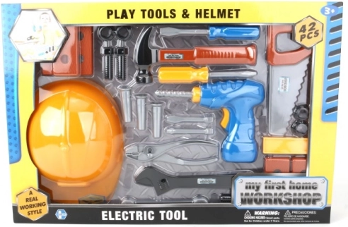 Completo set di attrezzi per piccoli tuttofare con 42 pezzi e casco protettivo da costruzione per un gioco realistico da riparatore e costruttore. Favorisce abilità manuali, coordinazione e creatività. Alcune funzioni richiedono 2× batterie AA (non incluse). Adatto ai bambini dai 3 anni – un regalo perfetto per piccoli maestri e costruttori creativi.