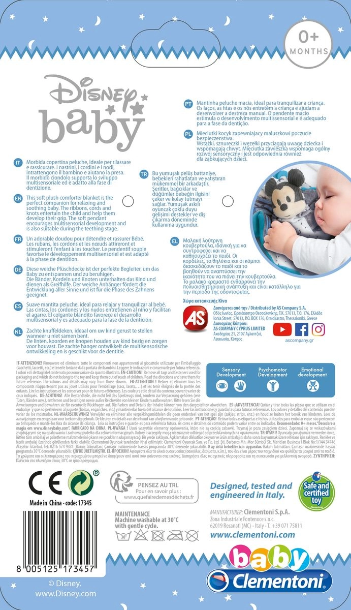Il doudou BABY MICKEY è pensato per accompagnare il bebè a casa e in viaggio. La superficie soffice è piacevole al tatto e il motivo MICKEY MOUSE conquista ogni bambino. L’alta qualità costruttiva garantisce lunga durata e un uso sicuro anche per i più piccoli.