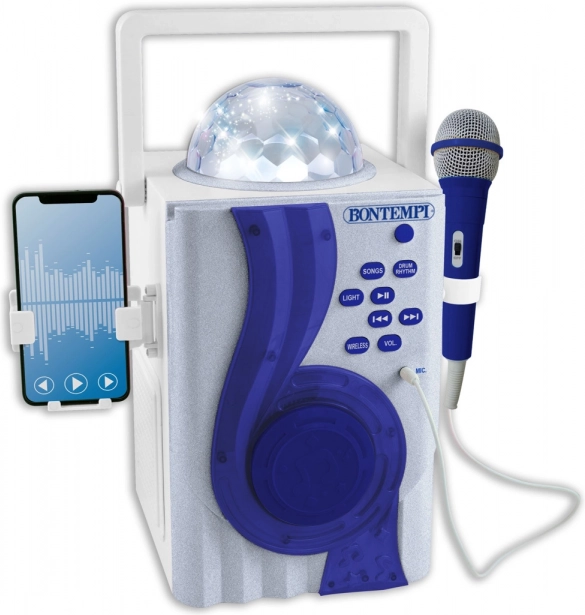 Karaoke Boom Box ti offre un'esperienza indimenticabile durante le serate di karaoke. Goditi uno spettacolo di luci magiche e ritmi preimpostati con demo.