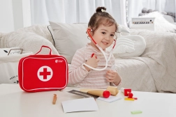 Il set di Classic World include tutto ciò di cui un piccolo dottore ha bisogno per giocare a fare il medico. I bambini possono ascoltare il battito cardiaco dei pazienti (orsacchiotti, bambole) con lo stetoscopio, 'misurare' la temperatura con il termometro, 'fare' iniezioni o fornire farmaci necessari. Il gioco del dottore non è solo un popolare gioco di ruolo, ma anche un insegnamento di empatia e partecipazione, fondamentale per le relazioni sociali. Questo set promuove lo sviluppo dell'immaginazione e l'apprendimento delle soluzioni ai problemi.