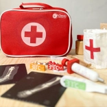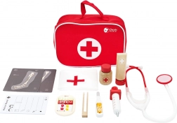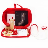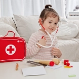 Include tutti gli strumenti essenziali per il gioco del dottore, tra cui stetoscopio, termometro e siringa.