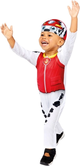 Trasforma il tuo bimbo nel coraggioso pompiere Marshall del cartone PAW PATROL. Il costume è progettato per offrire comfort e libertà di movimento, ideale per il carnevale, le feste di compleanno e il travestimento quotidiano.