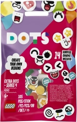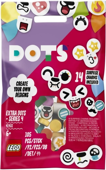Amplia le possibilità creative delle tue creazioni con la bustina LEGO DOTS accessori – serie 4. All'interno trovi 105 pezzi coloratissimi, inclusi simpatici motivi di occhi, bocche, orecchie e zampette, più 10 speciali pezzi segreti. Perfetti per decorare braccialetti, accessori per la stanza e borse – combina con altri set LEGO DOTS e crea design unici. Creatività senza limiti, facile da combinare e divertimento per piccoli designer.