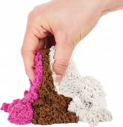 - Sabbia cinetica in più colori (es. rosa, marrone, bianco), stampi e utensili per servire