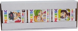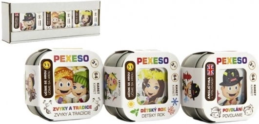 Il pexeso è tra i giochi per bambini più amati. Questi pexeso, inoltre, aiutano i bambini a svilupparsi. La confezione contiene tre piccole scatole di latta, all'interno delle quali si trovano tre pexeso diversi. Un pexeso è incentrato su usi e tradizioni, il secondo sull'anno del bambino e il terzo sulle professioni.