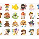 Motivi colorati di principesse, cavalieri, draghi e altri personaggi delle fiabe entusiasmano i bambini e facilitano la ricerca delle coppie.