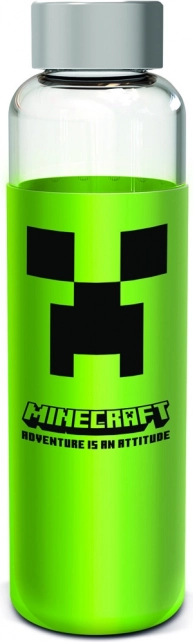 Questa bottiglia in vetro con rivestimento protettivo in silicone è ideale per l’uso quotidiano a casa, a scuola e in ufficio. Il motivo del celebre gioco MINECRAFT entusiasmerà fan di tutte le età e il resistente rivestimento aumenta il comfort di presa.