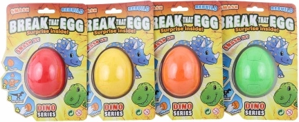 Scopri il segreto con il nostro uovo pieno di sorprese. Una volta schiacciato il guscio, all'interno troverai una figurina di dinosauro e potrai ricomporre l'uovo per un nuovo utilizzo.