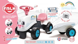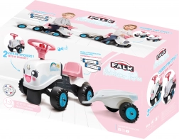 Trattore a pedale Falk Rainbow in colore bianco con rimorchio amovibile è il sogno di ogni piccolo agricoltore. È realizzato con precisione nei minimi dettagli ed è ideale per bambini dai 12 mesi. Il veicolo ha ruote in plastica e una struttura di materiali di qualità.