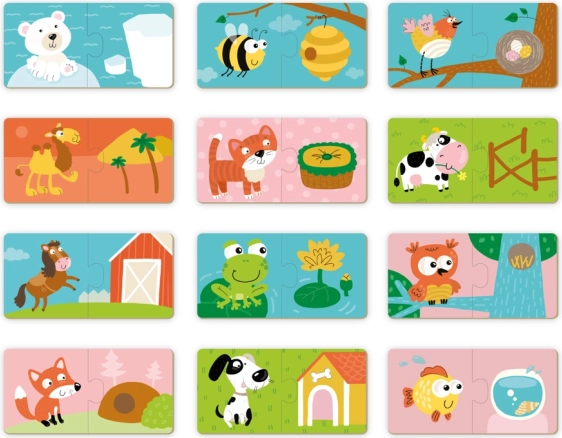 Scopri i primi puzzle per i più piccoli: il set include 12 coppie in cui i bambini abbinano l'animale al suo habitat. I pezzi grandi e robusti spessi circa 3 mm facilitano la presa e l'assemblaggio e favoriscono la motricità fine e il pensiero logico.