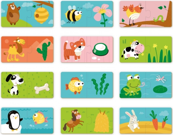 I puzzle per bambini “Cosa mangiano gli animali?” insegnano ai più piccoli ad abbinare correttamente gli animali ai loro cibi preferiti. Grazie al semplice sistema di 12 coppie, i bambini esercitano osservazione, concentrazione e coordinazione occhio–mano, imparando allo stesso tempo nuovi concetti in modo divertente.