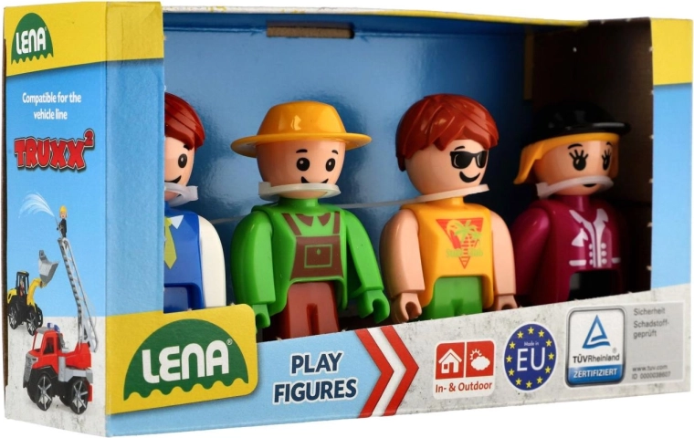 Scopri il divertimento con il set di quattro personaggi LENA: autista dell’autobus, contadino, ragazza e cavallerizza. Le figure sono compatibili con i veicoli TRUXX, adatte al gioco al chiuso e all’aperto e pensate per bambini a partire da 12 mesi. Produzione europea di qualità e certificazione TÜV garantiscono sicurezza e resistenza.