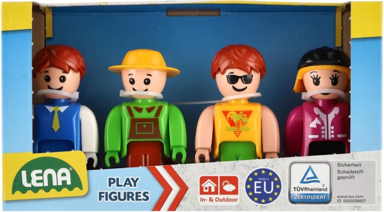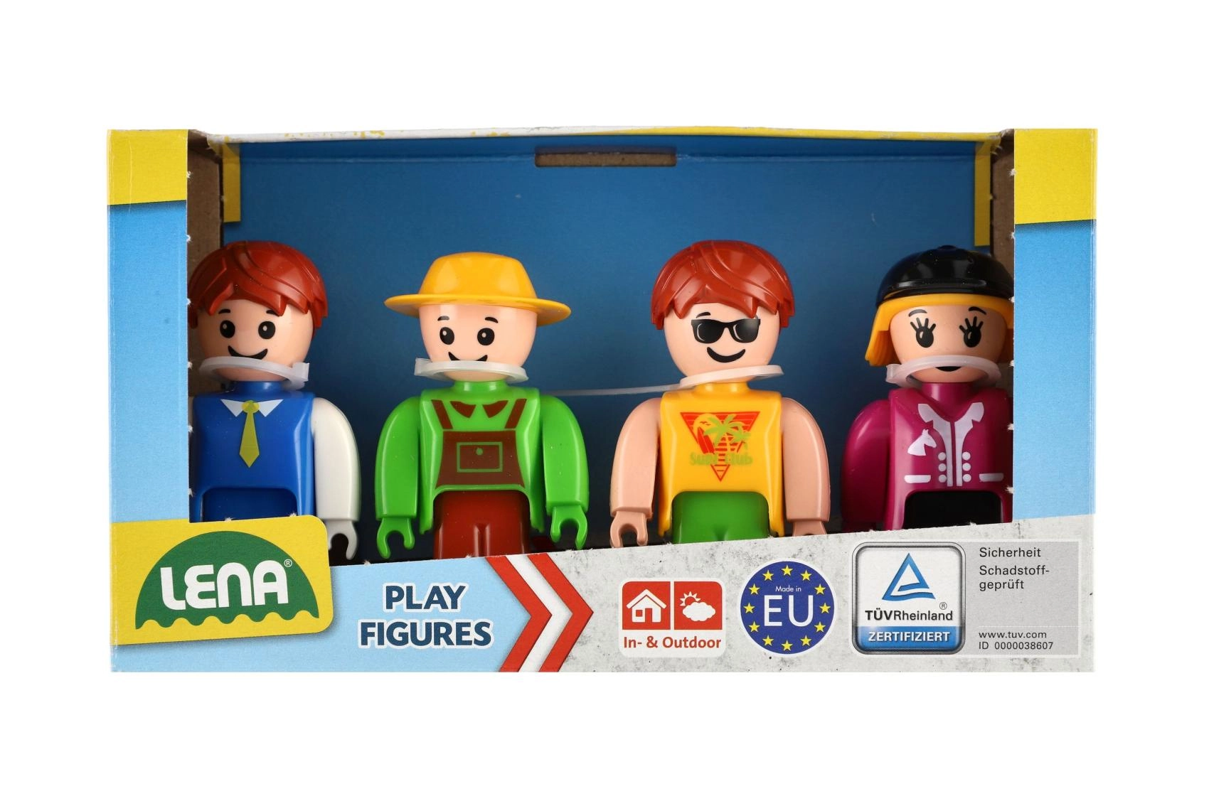 Il set di personaggi LENA verde offre ai bambini un gioco vario e lo sviluppo della fantasia. Quattro figure robuste, facili da impugnare con le mani piccole, con arti mobili, ideali per il gioco autonomo e per ampliare set da costruzione e veicoli.