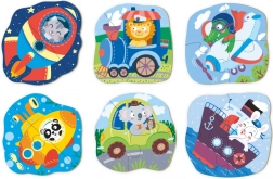 Il set include diverse piccole composizioni sagomate con temi di animali e mezzi di trasporto. Grazie al diverso numero di pezzi (2–4), i bambini procedono passo dopo passo, acquisendo sicurezza e gioia per i successi. Il formato compatto 13 × 13 cm è ideale a casa e in viaggio.