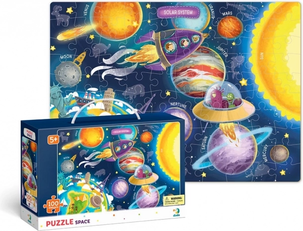Durante la composizione di questo puzzle, i bambini imparano a conoscere i singoli pianeti del sistema solare. Età: 5+. Dimensioni del puzzle completato: 64×46 cm