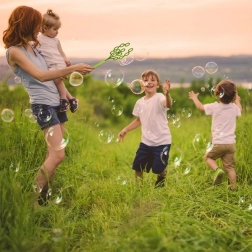 Prova l’effetto delle grandi bolle e la pioggia fitta di mini bollicine – basta cambiare il cerchio. Massima varietà di divertimento per ogni bambino.