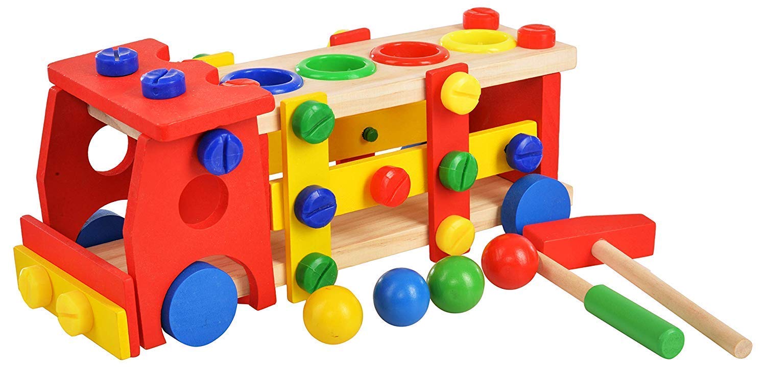 Un giocattolo educativo e interattivo sotto forma di macchinina di legno sviluppa le abilità motorie e cognitive. Supporta anche la creatività e la concentrazione del bambino.