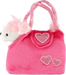 Questo grazioso set unisce giocattolo e accessorio moda in uno. La morbida borsetta rosa con manici e dettagli a cuore nasconde un dolce cagnolino, pronto a fare compagnia in ogni gita e durante il gioco a casa.