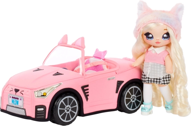 Na! Na! Na! Surprise Cabriolet Stiloso permette alle bambole di viaggiare con eleganza e originalità. Questa automobile di stoffa morbida è progettata per un viaggio confortevole e stiloso con ruote che si muovono realisticamente.