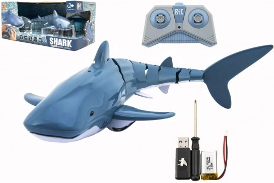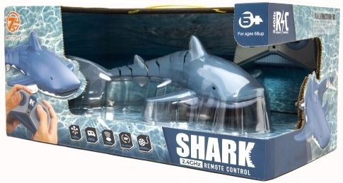 Attenzione allo squalo! Ma non preoccupatevi, è solo un pesce telecomandato di 35 cm. Uno squalo ideale per un acquario d'acqua dolce, con la capacità di nuotare fino a 30 minuti. Si muove avanti e indietro, a sinistra e a destra agitando la sua coda. Non c'è bisogno di dargli da mangiare o preoccuparsi che vi mangi, basta ricaricarlo di tanto in tanto. Un pesce divertente e molto carino per giochi nell'acquario, nella vasca o in piscina.