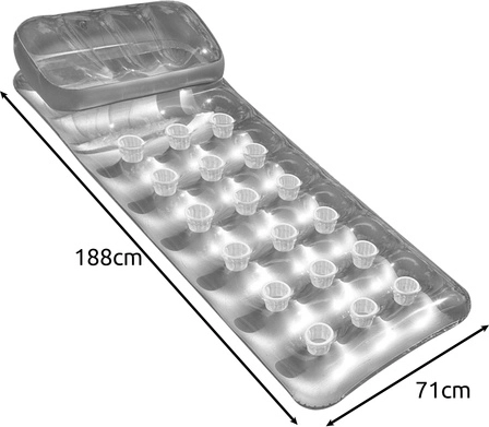 Il materassino è progettato per un comodo riposo in acqua e a terra. Grazie al cuscino integrato potrai godere del massimo comfort, sia che tu stia leggendo, prendendo il sole o semplicemente galleggiando in tranquillità. Le dimensioni sono adatte anche alle stature più alte, così puoi distenderti completamente e rilassarti.