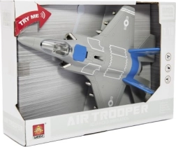 Questo caccia in plastica è un giocattolo ideale per piccoli soldati e piloti. È realizzato con materiali di alta qualità ed è destinato ai bambini a partire dai 3 anni. Grazie ai suoi effetti luminosi e sonori realistici offre tanto divertimento.