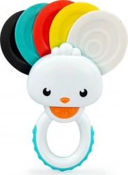 Le piume si aprono e si chiudono: sovrapponendosi generano sempre nuove combinazioni di colori che stimolano la vista e la curiosità. Il giocattolo è leggero, resistente e ideale per l’esplorazione sensoriale quotidiana a casa e in viaggio.